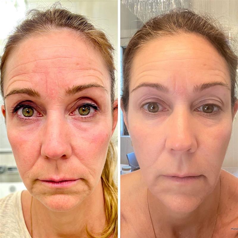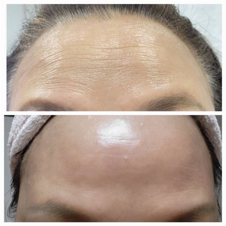 Visible reduction in forehead lines and improved skin texture using advanced Korean skincare technology.